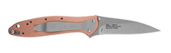 - A must-have addition to your Leek collection; Made in the USA. CPM 154 powdered metallurgy steel has uniform distribution of carbides to take and hold an excellent edge; good corrosion resistance, wear resistance, and toughness; stonewashed finish helps hide use scratches. Genuine copper handles will patina over time for a unique finish. Kershaw's assisted opening with a convenient flipper; Tip-Lock secures blade when closed.
