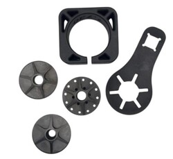 - What’s included in the box? Suppressor, 3 end caps, tube clamp, end cap wrench. Infinity — We decided to call this project Infinity early on because we wanted this to be a suppressor that will last you forever, you can pass down to your grandchildren and it last them forever too. Also because of it’s adjustability and ability to be configured to any host you have. It’s also marks our entry into the low back pressure market. Notice I didn’t say no back pressure, I said lowER back pressure. It has 3 different end caps that come in the box to adjust the back pressure and flow rate based on what host you want to use it on. Additional end caps are available for purchase separately. Other suppressors in the past have tried this idea, adjusting back pressure by changing end caps that allow it to vent from other chambers. But in our opinion they didn’t do a good job – great idea but poor execution. So we wanted to take that idea and make it good and I believe we’ve done that. How we did it is the inside of the infinity is actually divided up into 4 chambers. The first initial expansion chamber vents gas straight off of the muzzle as it enters the suppressor > the second is a high back pressure chamber that holds the gas while allowing a small amount of controlled flow into the third chamber > the third chamber is where gasses coming down the bore and gasses from the high back pressure chamber combine before going into the fourth chamber > the fourth and final chamber is a low back pressure high flow rate zone that moves gasses down the side wall. When you use the vented end cap it’s only venting gasses out of the fourth chamber which allows it to be very balanced. When using the vented end cap the pattern is vent > hold > combine > vent. When using the solid end cap the pattern is vent > hold > combine > hold. Solid 5.56 end cap (included in box), Vented 7.62 end cap (included in box) , Solid 7.62 end cap (included in box), Vented 5.56 end cap (available for purchase separately)