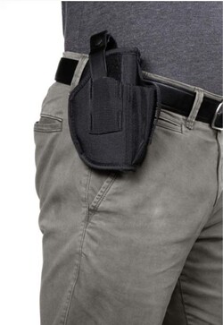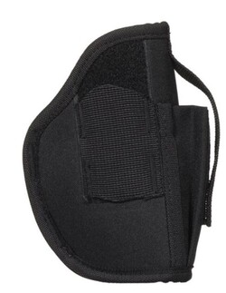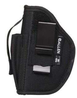 - The Allen Company Ambidextrous Handgun Belt Holster provides rugged construction, with a web sight guard, while smooth interior lining helps you with faster draw speeds. Secure thumb break retention system gives you the control you want and has an adjustable magazine pouch when you need it most. Designed for right & left-handed shooters, the steel, spring clip fits belts up to 1.5-inches wide. Available in a variety of sizes, fitting popular makes and models, find your fit and stay protected.