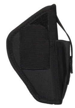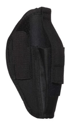 - The Allen Company Ambidextrous Handgun Belt Holster provides rugged construction, with a web sight guard, while smooth interior lining helps you with faster draw speeds. Secure thumb break retention system gives you the control you want and has an adjustable magazine pouch when you need it most. Designed for right & left-handed shooters, the steel, spring clip fits belts up to 1.5-inches wide. Available in a variety of sizes, fitting popular makes and models, find your fit and stay protected.