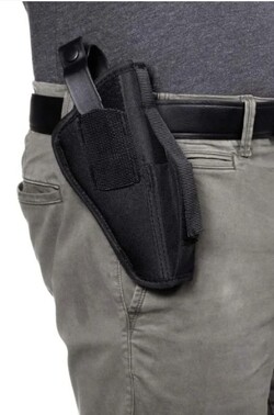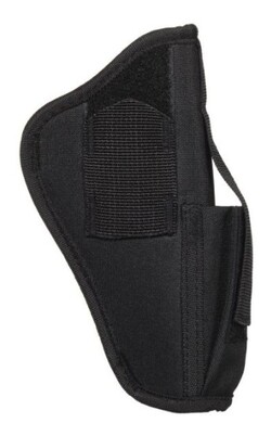 - The Allen Company Ambidextrous Handgun Belt Holster provides rugged construction, with a web sight guard, while smooth interior lining helps you with faster draw speeds. Secure thumb break retention system gives you the control you want and has an adjustable magazine pouch when you need it most. Designed for right & left-handed shooters, the steel, spring clip fits belts up to 1.5-inches wide. Available in a variety of sizes, fitting popular makes and models, find your fit and stay protected.