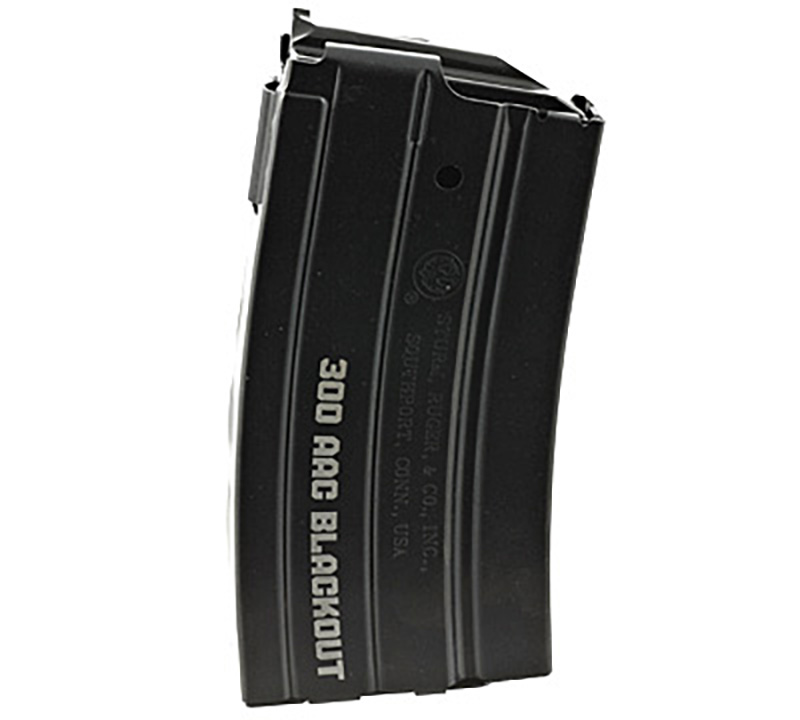 - Black Steel, 20-Round Magazine For The Ruger® Mini-14® Rifle Chambered In .300 Blackout. '300 AAC Blackout' Is Lasered On The Side Of The Magazine.
