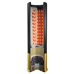 - 10% Greater Penetration Over Standard Lead Loads Beyond 50 Yards. Devastating Terminal On-Target Performance. Twice The Number Of Pellets In A 10" Circle Out To 60 Yards. Velocity 1,200fps.